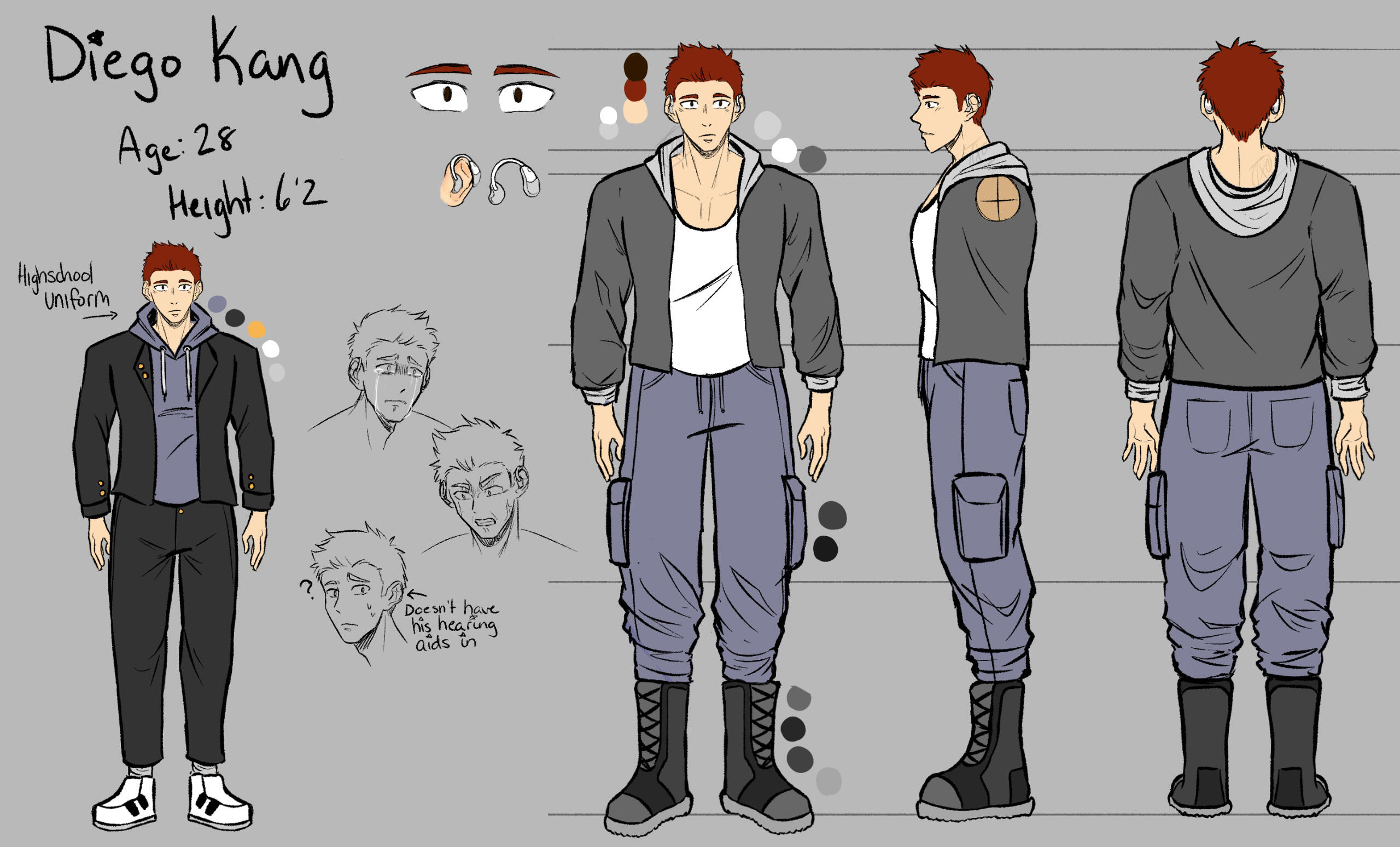 | Character Ref Sheet | Flat colored, written information about character on page | $40 |
